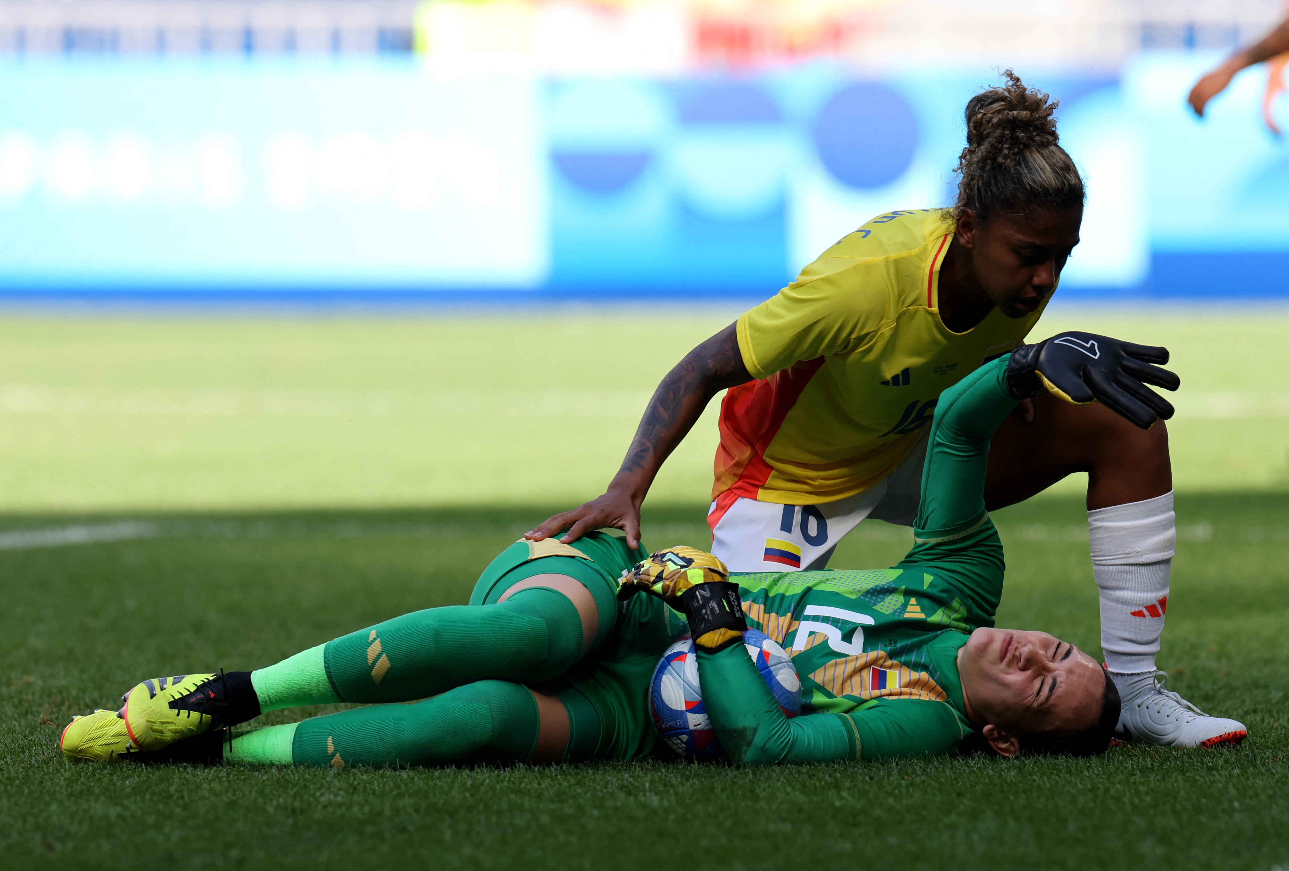 点球大战,西班牙先罚,第一轮,马里奥娜主罚命中,哥伦比亚点球罚丢。