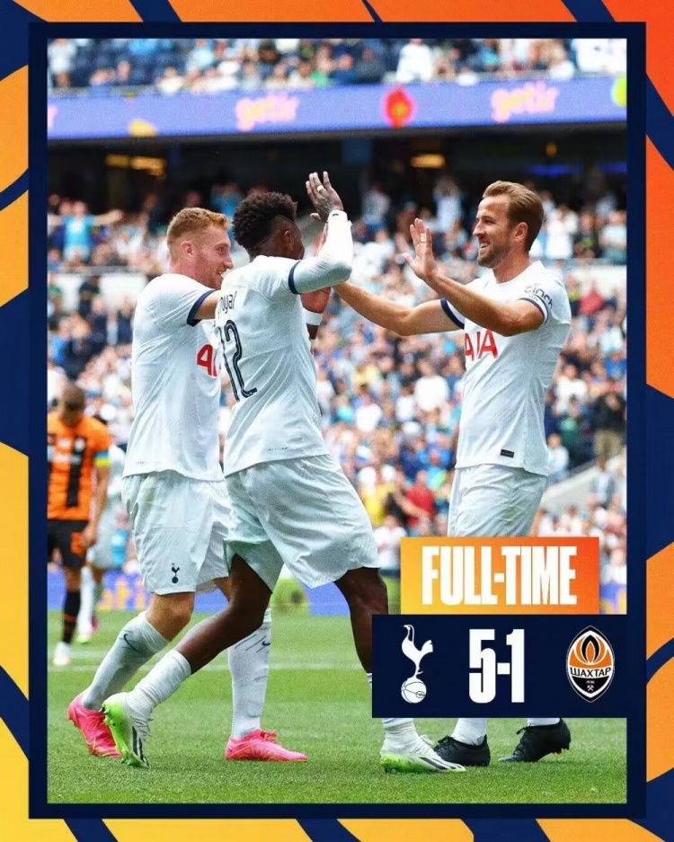 全比赛结束,热刺5-1顿涅茨克矿工。