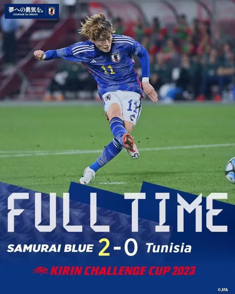 友谊赛-日本2-0突尼斯豪取六连胜&轰24球 古桥亨梧、伊东纯也建功