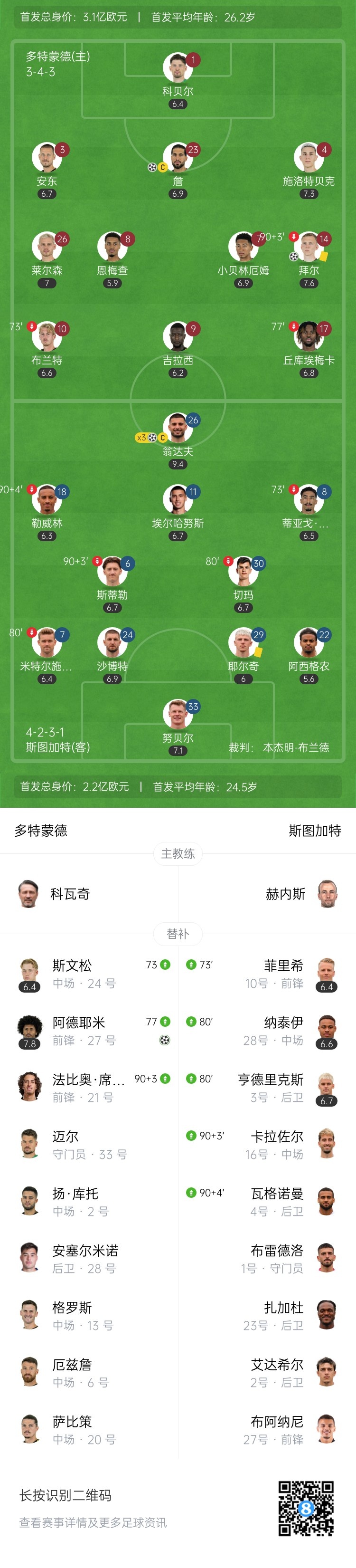 1月25日讯 北京时间1月25日01:30,德甲第19轮多特挑战柏林联合的比赛在老林务所畔体育场进行,上半场吉拉西造点,埃姆雷詹点射闪击得手,下半场瑞尔森助攻施洛特贝克头球扩大比分,小贝林厄姆助攻拜尔抽射再下一...发表于:01月25日