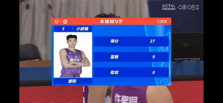 清华大学:邹阳本场27分9篮板5抢断2盖帽,方佳晨22分10篮板,杨曦皓14分9篮板,温淞12分5篮板