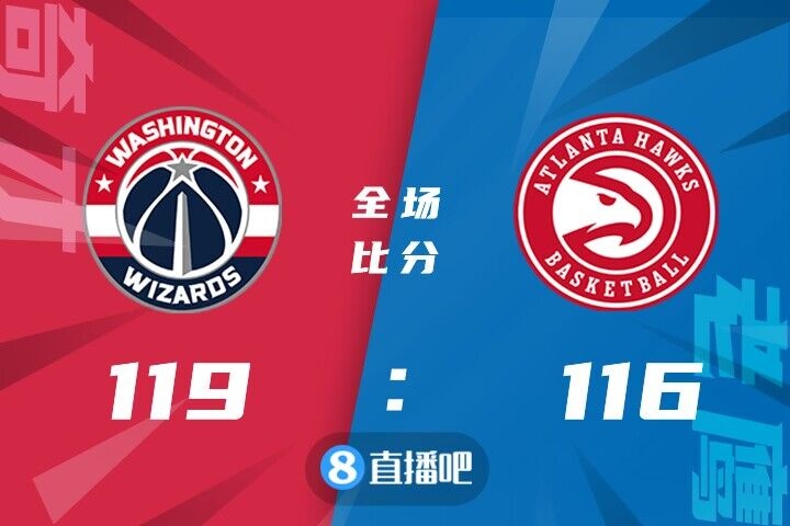 比赛开场,奇才率先发力,建立7分的领先优势,但老鹰很快抹平分差,两队陷入拉锯战,次节两队依旧是交替取分,节末老鹰连续杀伤禁区领先到7分,赖特压哨造成三分犯规并全部罚中,半场结束老鹰56-52领先。易边再战,老鹰稳扎稳打维持分差,一度领先到两位数,但是奇才顽强紧咬比分,落后5分进入第四节。末节回到场上,分差一直在6分上下浮动,库兹马和比尔连续打成帮助球队在节末取得反超,最后三十秒比尔和特雷-杨各自飙中三分,比尔关键中距离再进,特雷-杨绝平三分连续不中,奇才119-116逆转战胜老鹰。