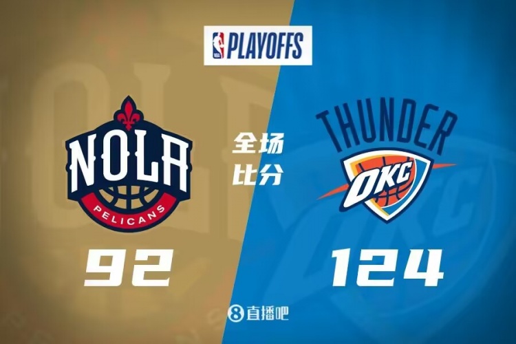 首节之争鹈鹕的外线手感比较糟糕,麦科勒姆和墨菲这两座关键炮台首节7投0中,而球队三分线外8投1中导致进攻端被压缩,这也让瓦兰拿到11分的发挥起不到太大作用;雷霆则效率奇高频频打成反击,霍姆格伦和瓦兰互爆但更胜一筹,单节命中3记三分独得15分为球队迅速确立起两位数领先;这之后雷霆一直保持着大比分领先,但鹈鹕外线回暖帮助他们咬住13分的劣势进入下半场。下半场雷霆稳定输出一直牢守两位数优势,末节开局雷霆送出7-2的攻势后分差拉大至23分早早奠定胜局。最终,雷霆主场124-92轻取鹈鹕连下两城,总比分上2-0取得领先。