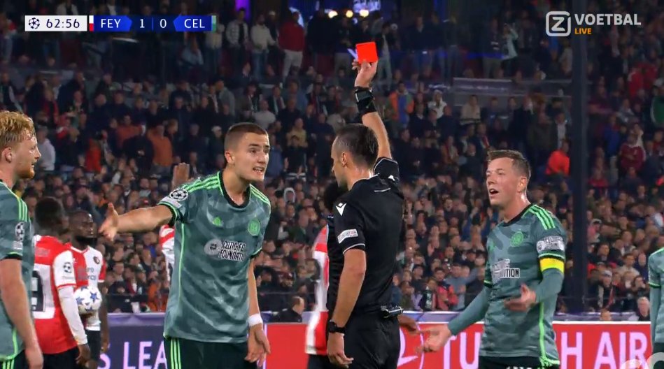 欧冠-费耶诺德2-0九人凯尔特人 斯滕斯破门凯尔特人5分钟两红崩盘