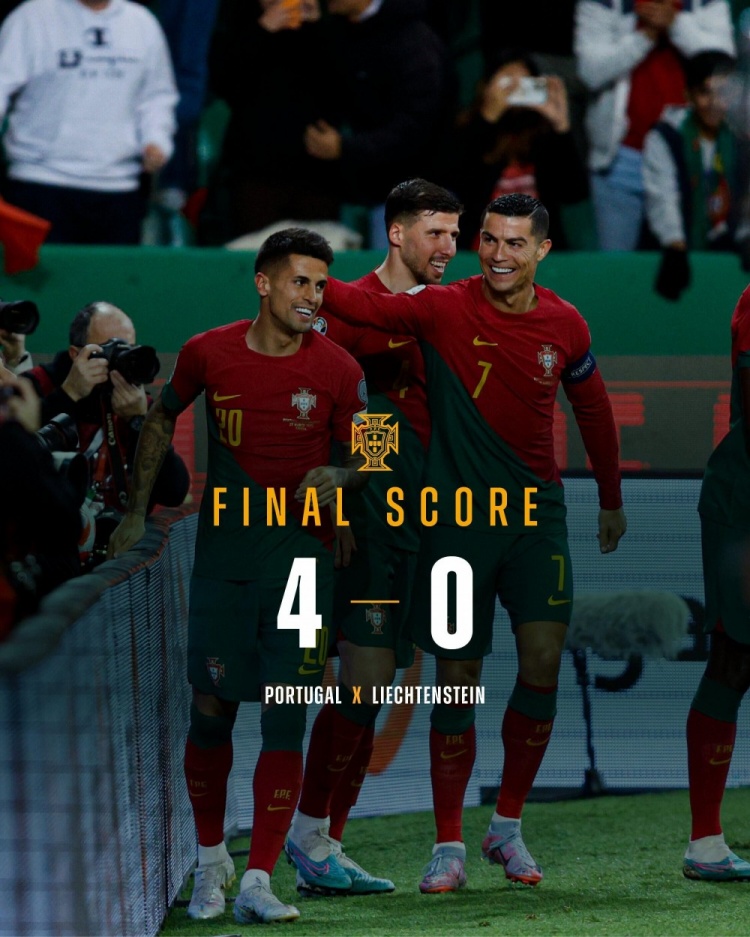 全场比赛结束,葡萄牙4-0列支敦士登。