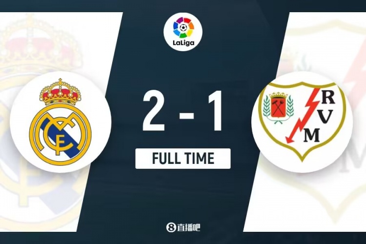 全场比赛结束,皇马2-1巴列卡诺。