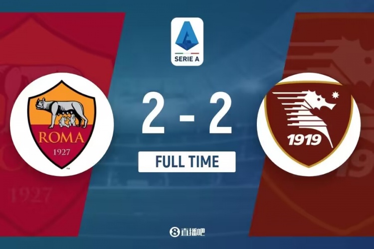 全场比赛结束,罗马2-2萨勒尼塔纳。