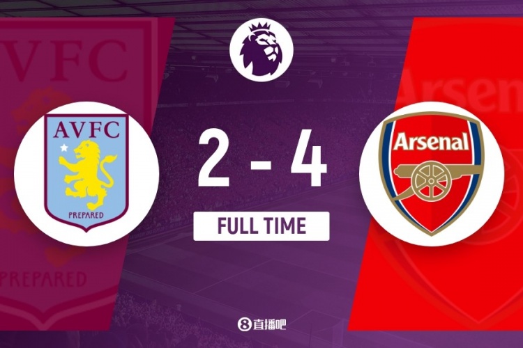 伤停补时6分钟。全场比赛结束,阿森纳4-2阿斯顿维拉。
