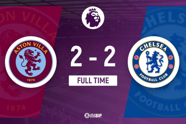 全场比赛结束,切尔西2-2阿斯顿维拉!