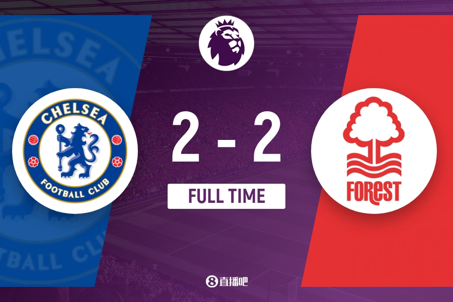 下半场伤停补时5分钟,全场比赛结束,最终切尔西2-2诺丁汉森林。