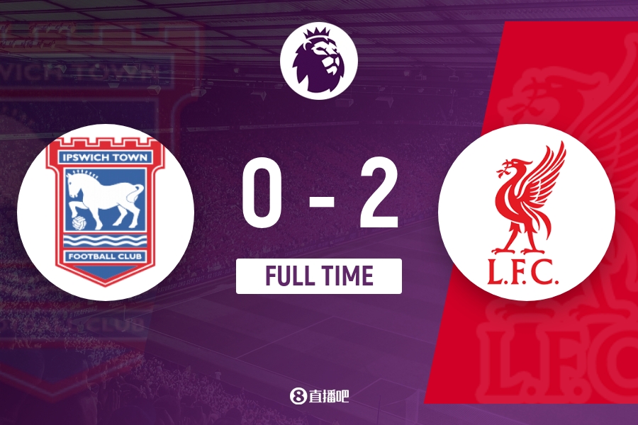 全场比赛结束,最终利物浦2-0伊普斯维奇。