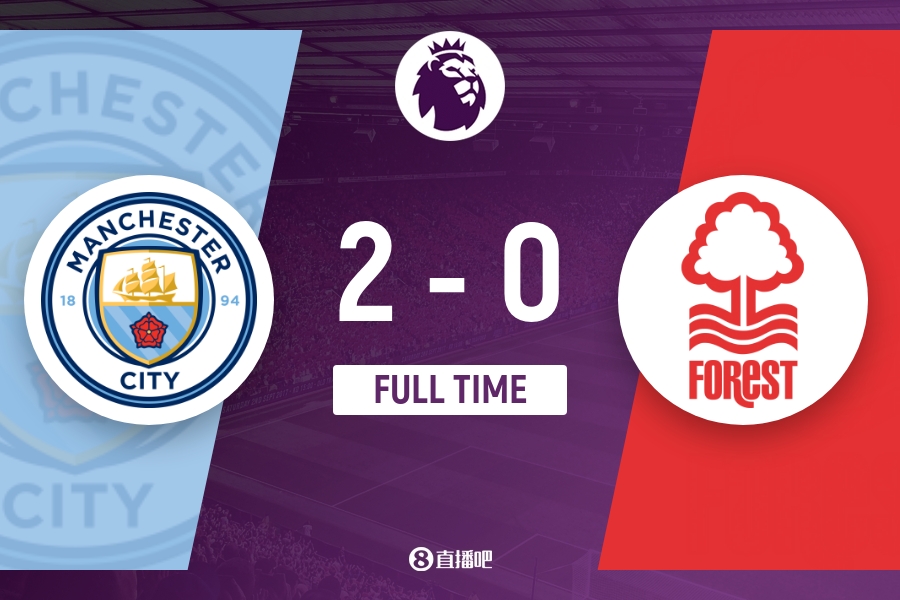 全场比赛结束,曼城2-0击败诺丁汉森林。