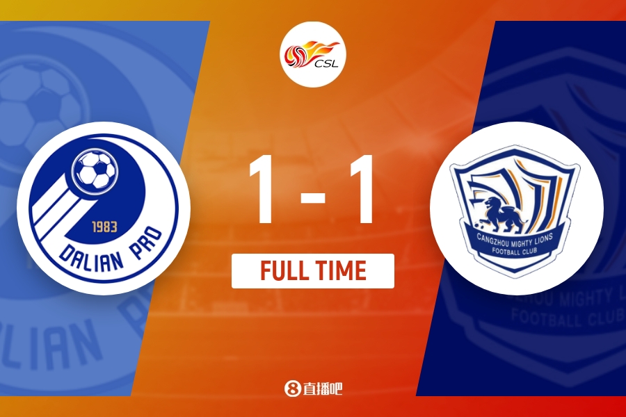 下半场比赛补时4分钟,全场比赛结束!大连人主场1-1战平沧州雄狮!