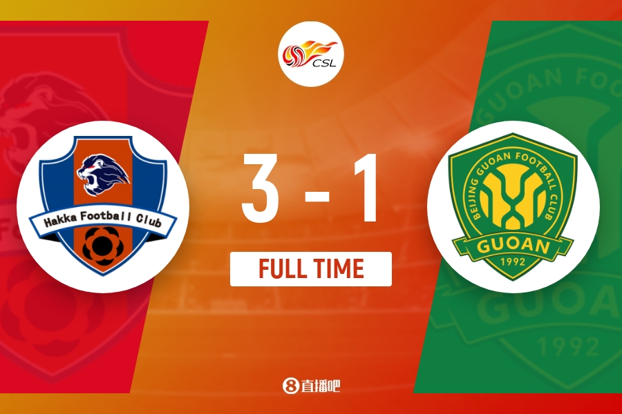全场比赛结束,梅州客家3-1北京国安。