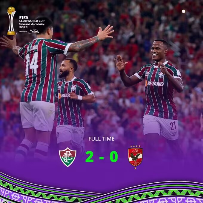 12月19日讯 北京时间12月19日凌晨2点整,2023年世俱杯半决赛展开角逐,弗鲁米嫩塞对阵开罗国民。上半场阿里亚斯两度中框,法比奥神扑救险,下半场马塞洛造点,阿里亚斯点射,肯尼迪锁定胜局。最终弗鲁米嫩塞2-0战胜开罗国民进军决赛,弗鲁米嫩塞决赛将对阵曼城与浦和红钻之间的胜者。