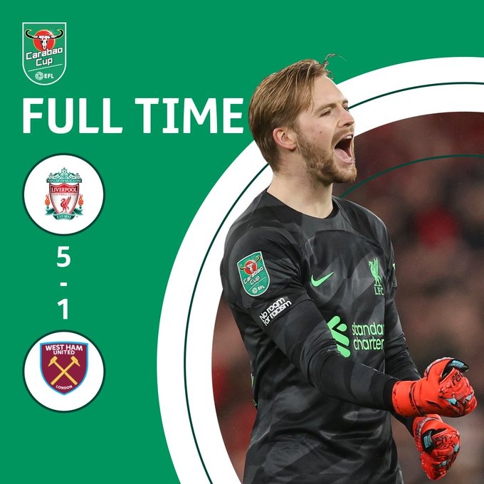 联赛杯-利物浦5-1西汉姆进四强 索博世界波萨拉赫破门+失空门