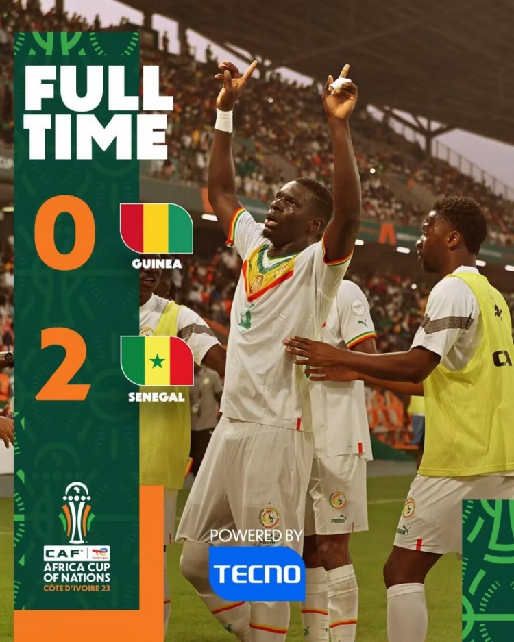 1月24日讯 北京时间1月24日1点,非洲杯小组赛C组塞内加尔对阵几内亚。上半场,塞内加尔攻势占优但也没有绝对机会,下半场,阿卜杜拉耶头球破门,恩迪亚耶替补建功。全场比赛结束,塞内加尔2-0几内亚。塞内加尔3战全胜以小组第一晋级,几内亚积4分小组第3出线。
