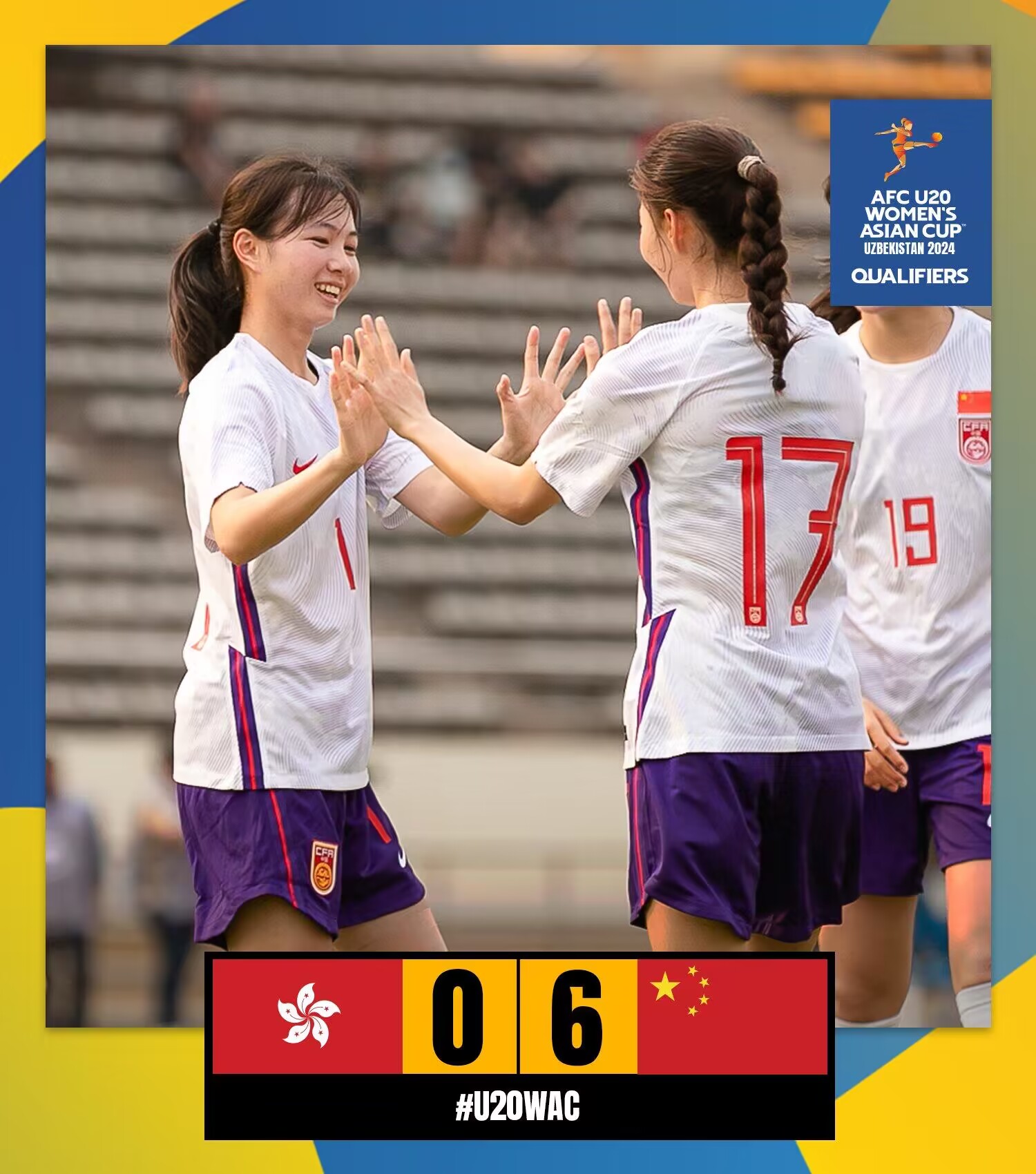 U20女足亚预赛-欧阳玉环戴帽霍悦欣破门 中国6-0中国香港取2连胜
