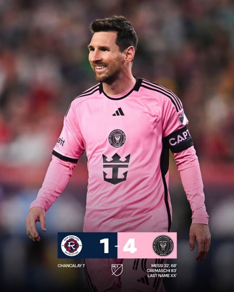 全场比赛结束,迈阿密国际4-1新英格兰革命。