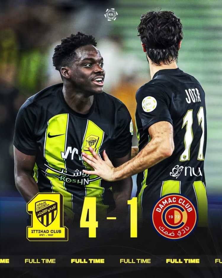 沙特联-吉达联合4-1达马克终结5轮不胜 哈吉1射2传若塔破门