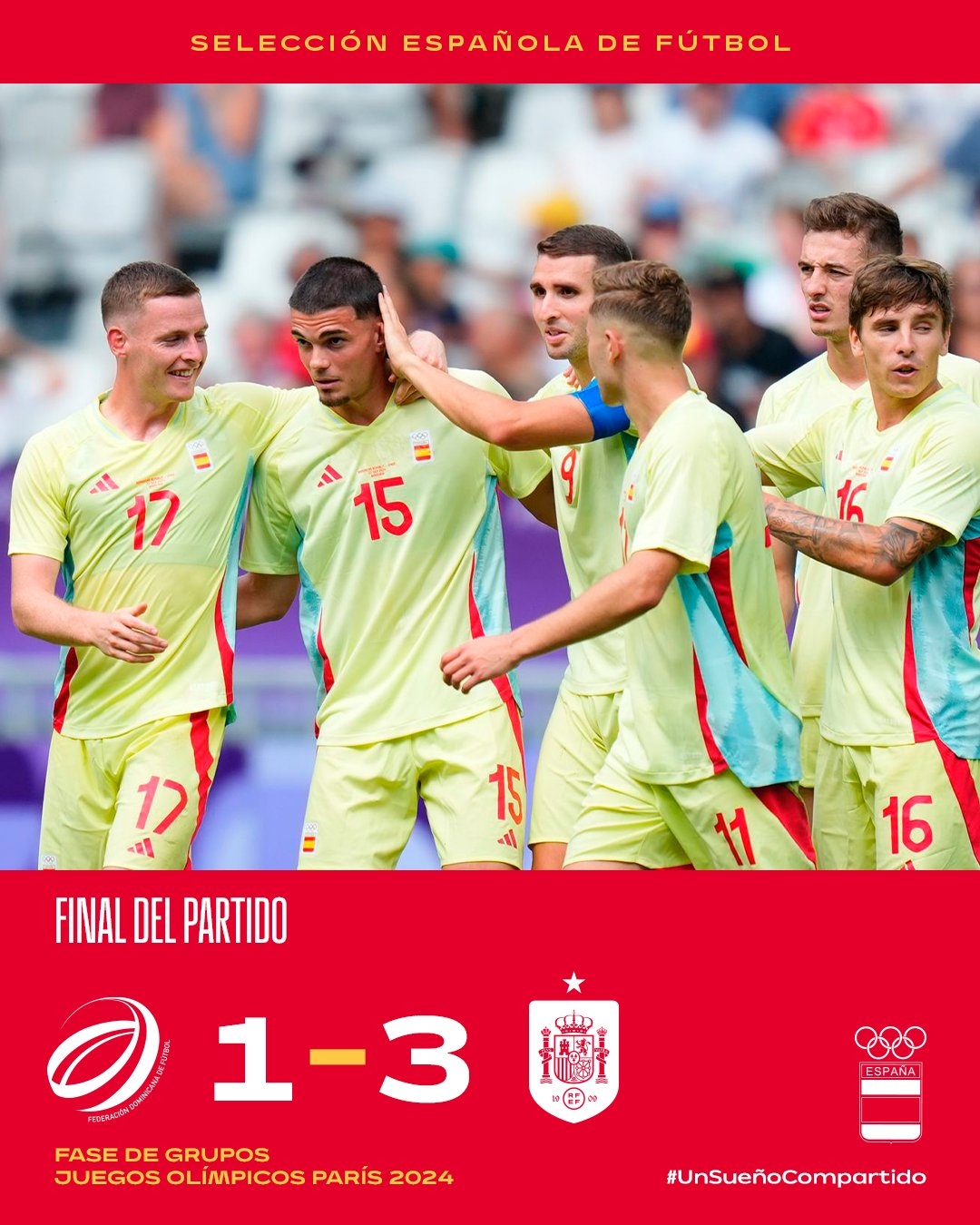 奥运男足-西班牙3-1多米尼加提前出线 费尔明破门阿兹科纳直红
