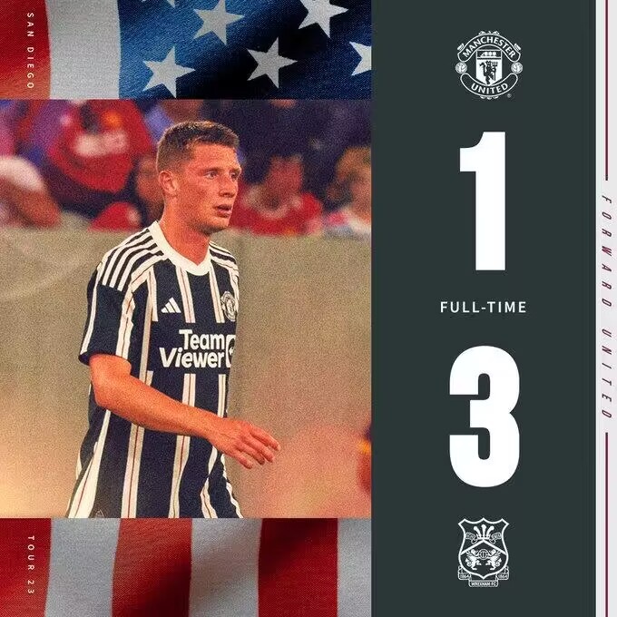 7月26日讯 北京时间7月26日10点30分,友谊赛曼联对阵雷克瑟姆,本场比赛曼联以青年军出战。上半场,穆林伤退,雷克瑟姆先进两球,胡拉多补时阶段扳回一球。下半场刚上来戈尔就飞铲染红,戴尔比头球建功。全场比赛结束,曼联1-3雷克瑟姆。