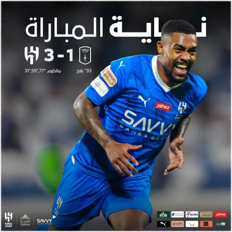 第76分钟,利雅得新月通过右路发动攻势,穆罕默德-卡努助攻,马尔科姆停球抽射破门戴帽,利雅得新月3-1领先艾卜哈。↓