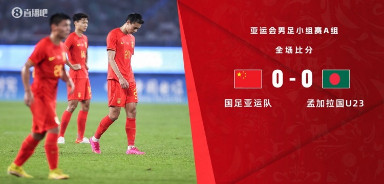 直播9月24日讯 北京时间9月24日晚上19:30,亚运男足小组赛第3轮,中国迎战孟加拉国。上半场,孟加拉国多次攻势颇具威胁。下半场,双方均无建树。全场结束,中国0-0孟加拉国。本场过后,中国以小组第一的身份晋级,孟加拉国积1分小组垫底被淘汰。